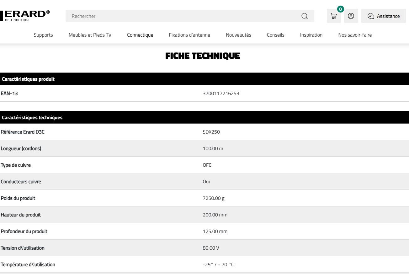BOBINE DE CABLE HP 2 x 2.5mm² - CUIVRE OFC 100 M ERARD CONNECT
