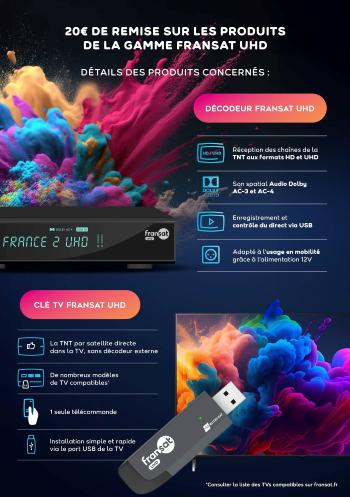 Avec ce décodeur vous apprécierez les chaînes gratuites de la TNT diffusées par FRANSAT en UHD 4K.